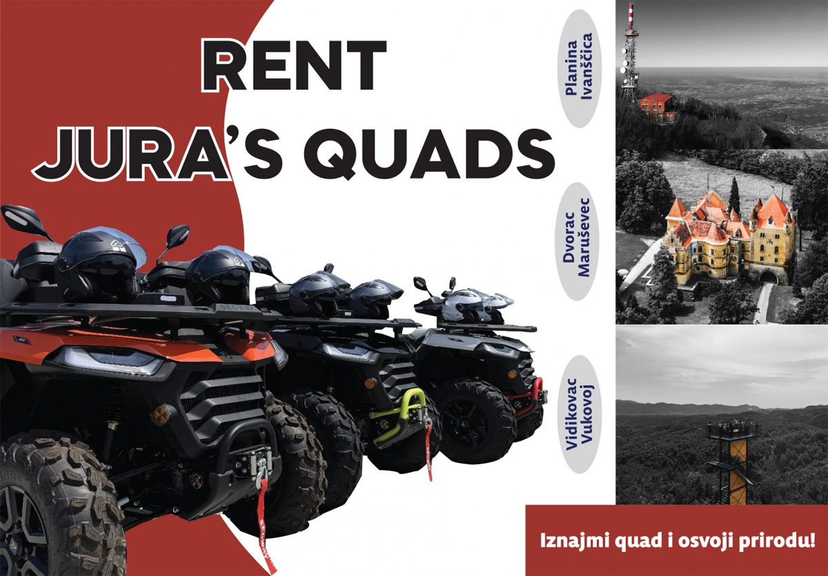 Najam quadova sve je popularniji način za istraživanje prirodnih krajolika, osobito među turistima željnima adrenalina. Od sada se i na području Ivanca možete okušati u ovoj avanturi najmom vozila od “Jura’s Quads” agencije.