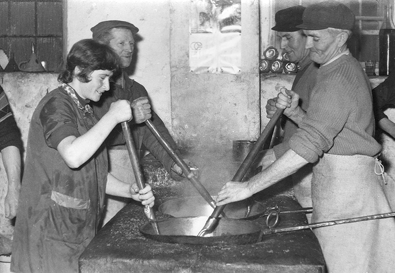 Im Rahmen der Mühle gab es einen sogenannten „Mühlensaal“ mit den Maßen 8x6 Meter, in dem die sogenannten „Gruppen“ von Personen untergebracht waren, die Waren zur Verarbeitung brachten. Sie vertrieben sich die Zeit mit Singen, Kartenspielen und anderen Spielen, darunter auch das Spiel „Rihter“. Unverzichtbar war auch das Angebot an lokalen Spezialitäten (Würste, Schinken, Speck, Wein…). In den Abendstunden versammelte sich dort auch die einheimische Bevölkerung, besonders junge Männer und Frauen.