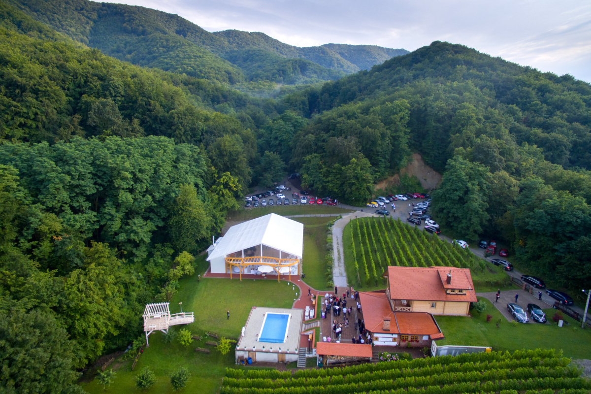 U okviru ovog kompleksa osim prekrasne sale za vjenčanja koja može primiti čak 350 gostiju, dostupni su i dodatni kapaciteti. To uključuje manju dvoranu s kapacitetom do 70 osoba smještenu na uzorno uređenom imanju s bazenom. Šumska vila koja se proteže na impresivnih 6000 m² može ugostiti sve vaše prijatelje i rodbinu, pružajući savršeno okruženje za svečane događaje poput svadbenih domjenaka, ceremonija i svadbene proslave.