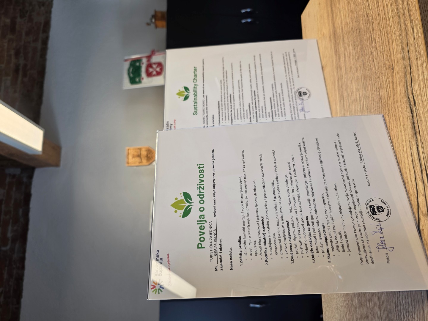 U ovaj proces aktivno se uključila i Turistička zajednica Grada Ivanca. Sudjelovanjem na radionicama te potpisivanjem povelje preuzeli smo obvezu primjene održivih praksi u turizmu. Podršku takvom pristupu daju i lokalni iznajmljivači, a među njima su i Kuće za odmor Vinbreg, čiji je vlasnik potpisivanjem povelje također potvrdio opredijeljenost za primjenu načela održivog turizma.
